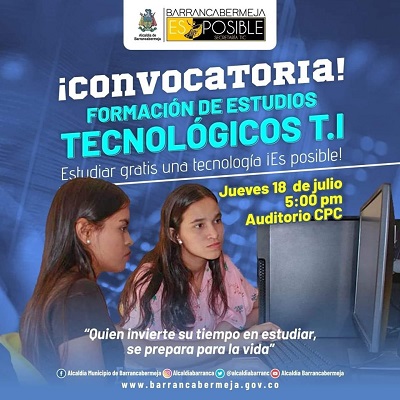 Las personas interesadas en estudiar carreras afines a las Tecnologías de la Información, la Secretaría TIC presentará el 18 de julio el programa que ofrece el Ministerio TIC, para beneficiar a la ciudadanía en el adecuado uso y manejo de las herramientas digitales.