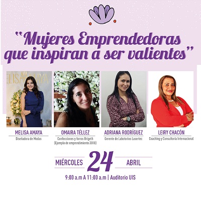 El lanzamiento de este programa se realizará el miércoles 24 de abril de 9:00 a 11:00 a.m. en el Auditorio de la UIS, con un conversatorio donde las asistentes podrán interactuar con las emprendedoras invitadas, ejemplo de perseverancia y dedicación, quienes contarán desde su experiencia cómo ha sido su labor, sus tropiezos y cómo después de tantos sacrificios lograron cumplir su sueño. Las invitadas para esta jornada serán: