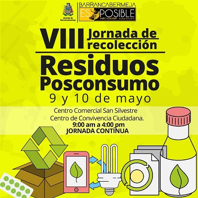 La Alcaldía de Barrancabermeja a través de la Secretaría de Medio Ambiente, invita a toda la comunidad a participar el 9 y 10 de mayo en la VIII Jornada de Recolección de Residuos Posconsumo.