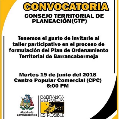 “Invitamos de manera especial a los presidentes de juntas de acción comunal, ediles, dignatarios, líderes, y comunidad en general para que participen de los talleres de Formulación del Plan de Ordenamiento Territorial, teniendo en cuenta que es la etapa más importante en la construcción del POT para Barrancabermeja”, puntualizó Díaz Acevedo.